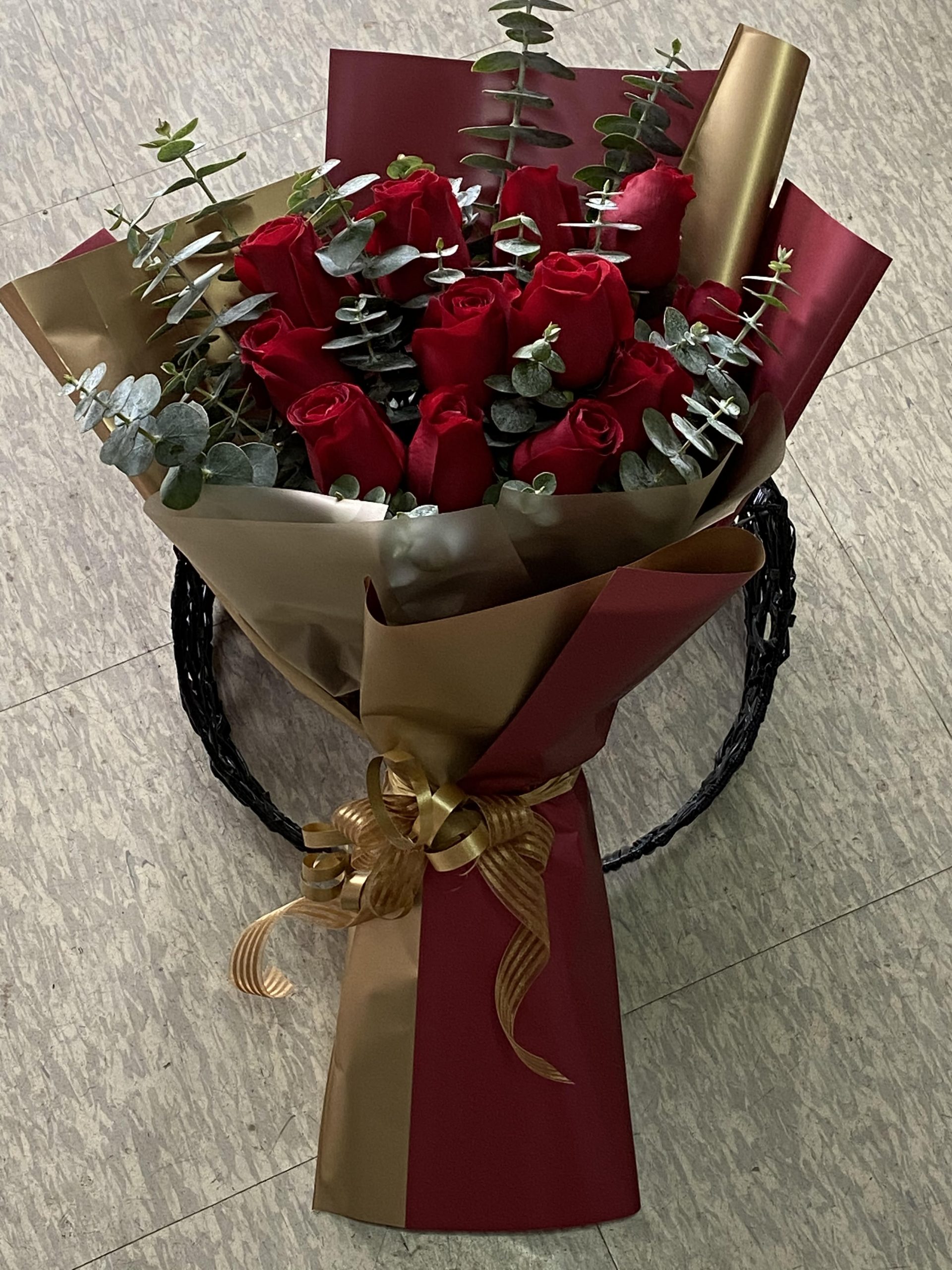 12 roses with greens and fillers